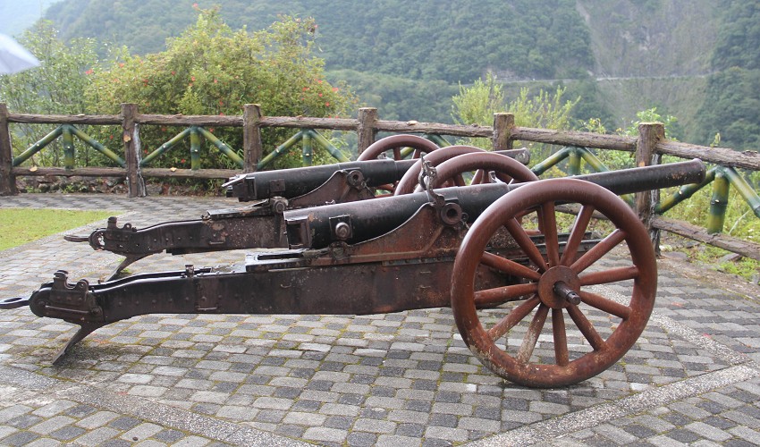 當年驅趕山上原住民的大砲,據說只是用砲聲嚇嚇而已,並無傷害之意。(↑)