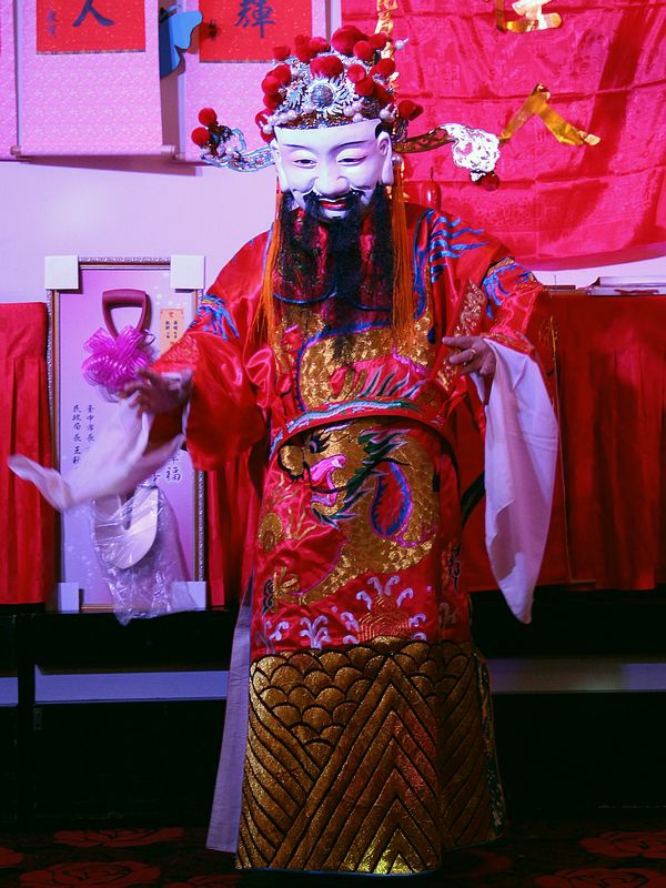 跳加官的由來,據說是唐明皇的宰相李林甫口蜜腹劍,滿朝官員皆恨之入骨。有次,唐明皇宴請群臣欣賞教坊優伶的表演,在場武大臣想藉此機會戲弄李林甫,便奏說李宰相「精於梨園」。明皇一聽,甚為高興,即命李林甫當場作戲。李林甫哪會演戲?但君命難違,只得戴上面具,亂舞一番。並展示一些吉祥喜慶的條幅以討皇帝的歡心。果然,唐明皇看了非常高興,便下口諭,今後凡有演唱活動,均要演出這個節目。於是,「跳加官」就這麼一代代地傳下來了。