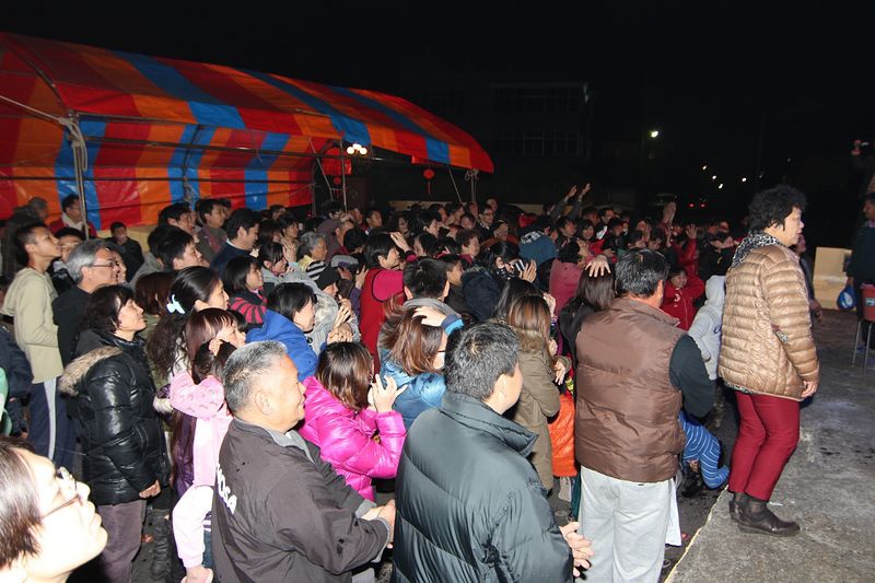 晚間九點祭祀典禮完畢後,並施放煙火瀑布和高空煙火秀(↓)和請村民吃宵夜(↑),連續三天都是如此熱鬧異常,難怪村民都把每年農曆十二月二日至四日,視為當地的一大盛事。