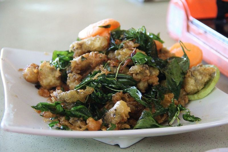 炸蚵仔酥、鵝肉、炒烏參魷魚、田雞、苦瓜炒蛋、炒麵和在炒飯