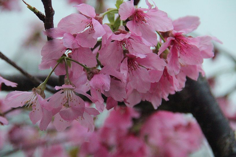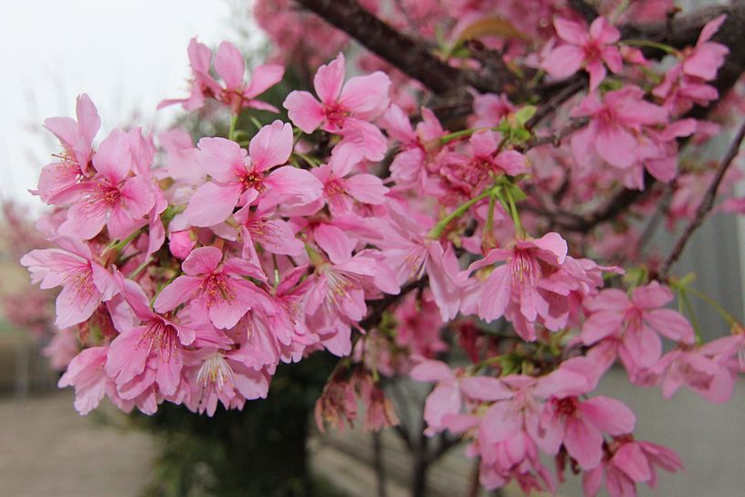 說起我家的種花史,應該是2008年的三月初,我路過三義一家雕刻品店,也就是一排日式建築物前,不禁被開滿整株的粉紅色花朵所吸引,詢問老闆後才得知是富士櫻,因此委託老闆購買了五株櫻花樹,再透過栽培苗木和嫁接方式,現在已種有卅多棵富士櫻。