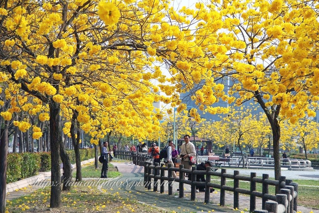 看過這般美麗的黃花風鈴木嗎?這座公園就位於台中市北屯區的廍子公園