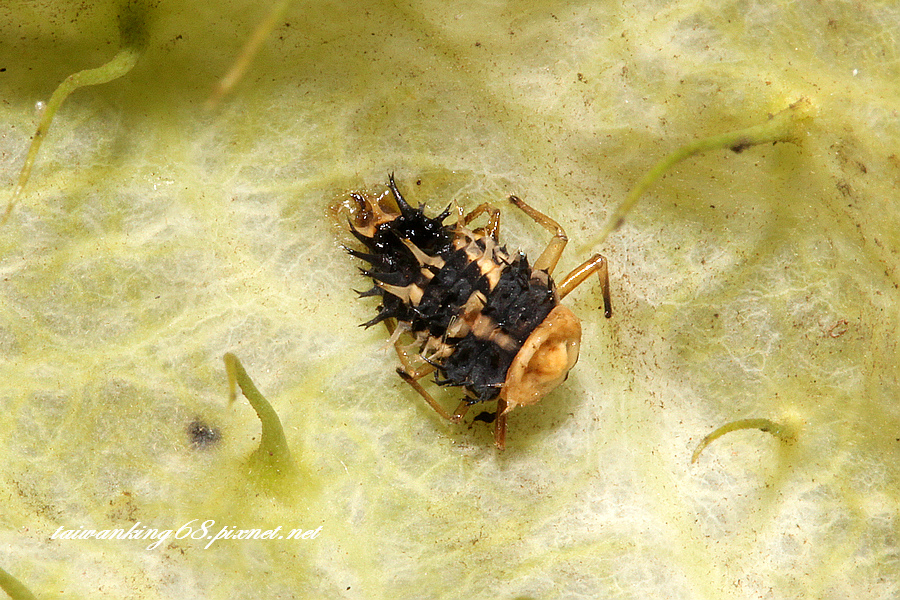 下圖(↓)即將變成瓢蟲的幼蟲,發現在六星瓢蟲旁;資料取自嘎嘎昆蟲網站