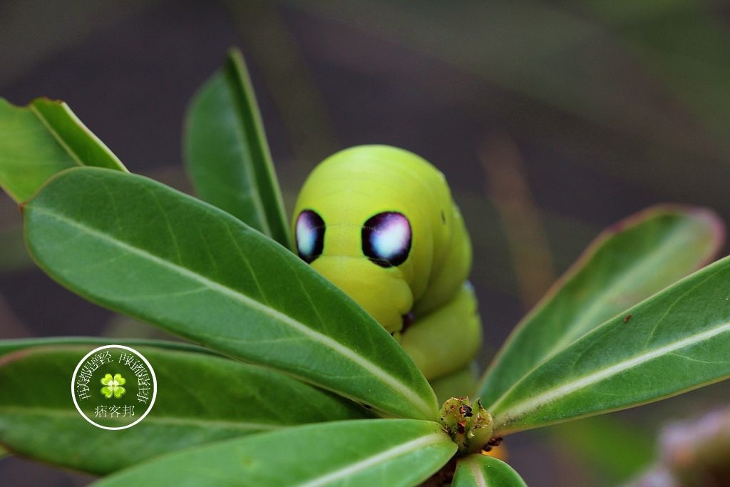 牠的幼蟲長相可愛,假眼猶如兩顆水汪汪的大眼睛;此昆蟲無毒性,很適合當生態觀察