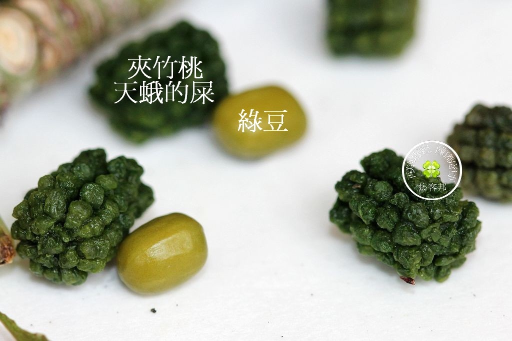 夾竹桃天蛾的屎和綠豆相比(↑),天蛾幼蟲的屎是綠豆的兩倍大