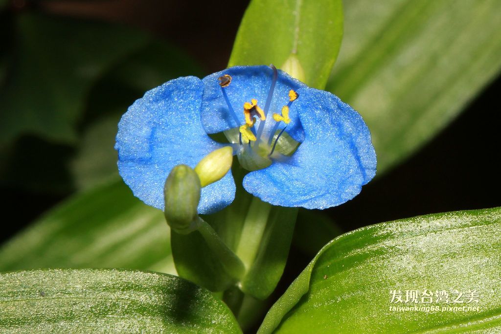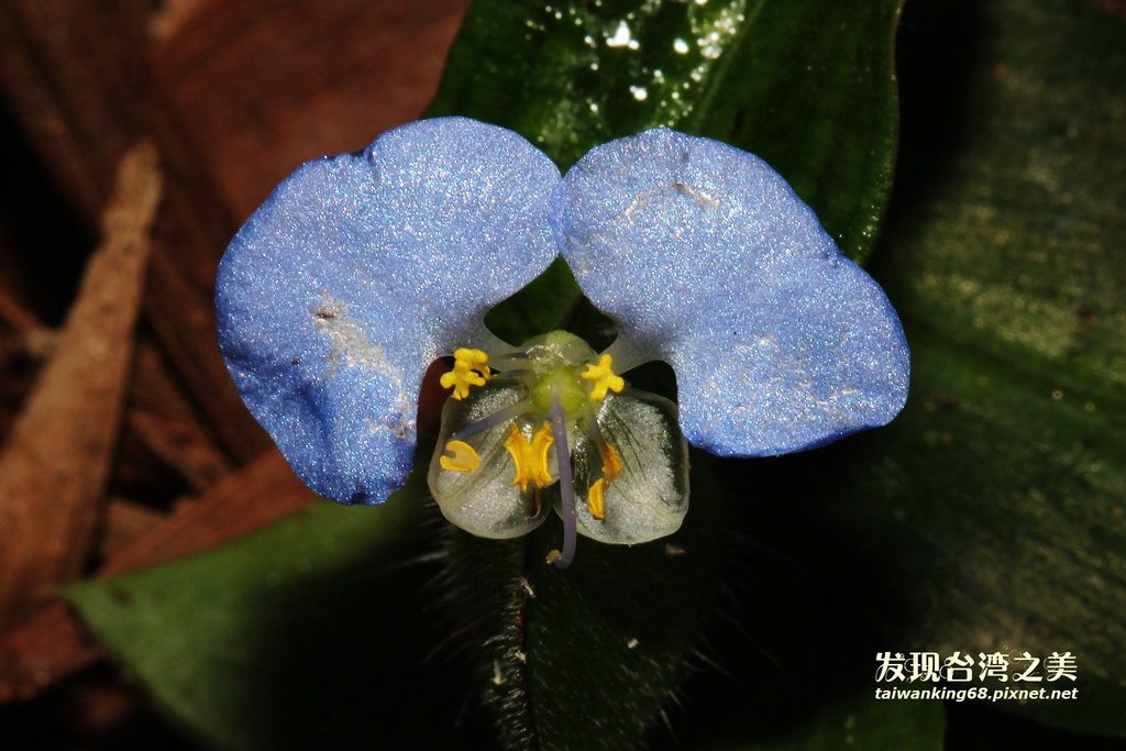 猶如鑲著藍碎鑽石的野花-〝耳葉鴨跖草〞和〝竹仔菜〞耳葉鴨跖草和竹仔菜很類似,她們的差異在於花瓣上,耳葉鴨跖草的藍色花瓣有兩片,但竹仔菜則有三片。她們皆生長在荒郊野外的山坡上,小小的藍色花朵在綠色草叢中顯得非常突出。