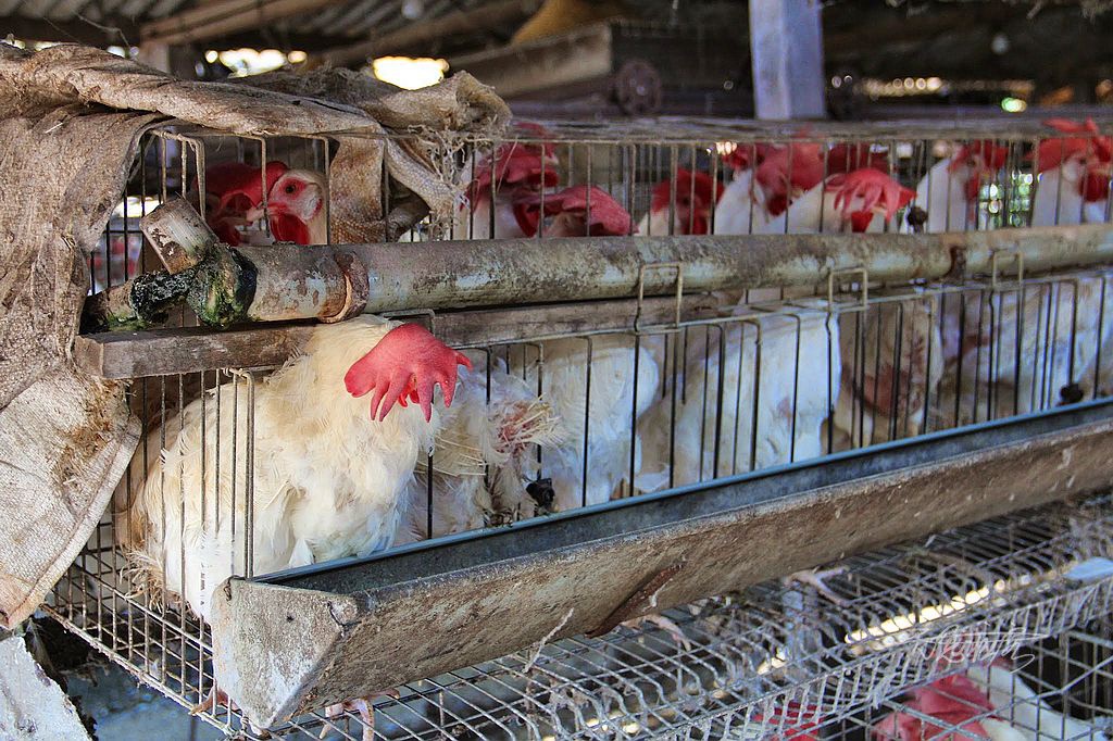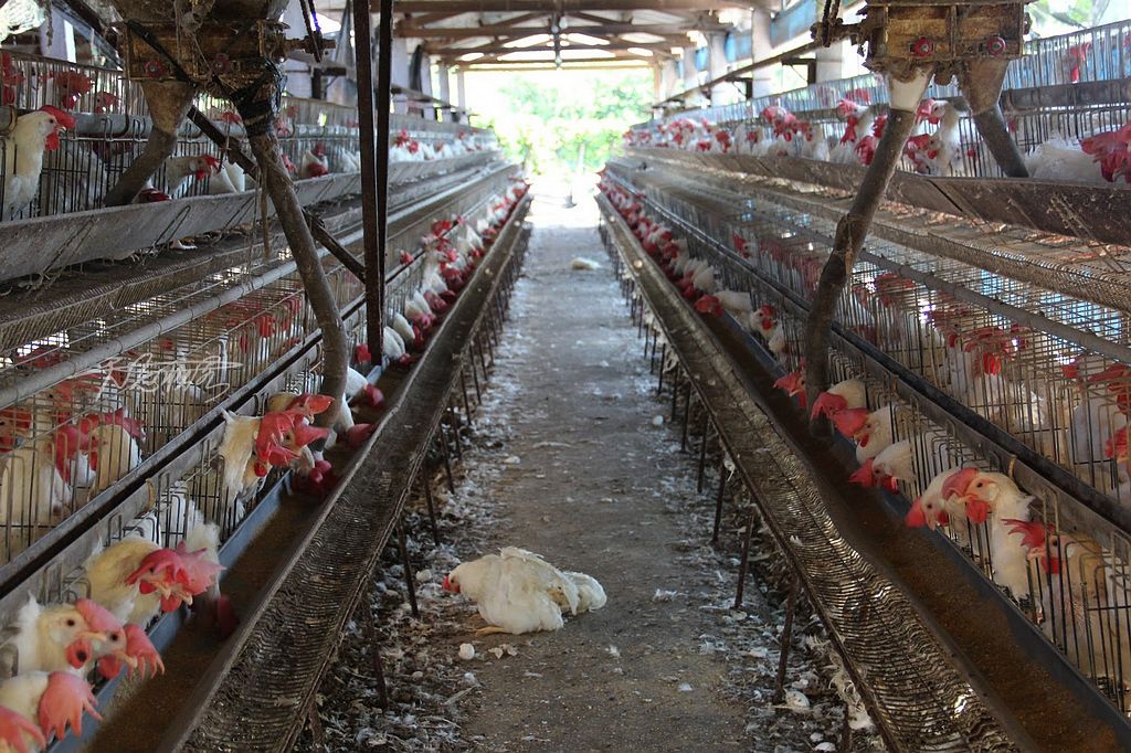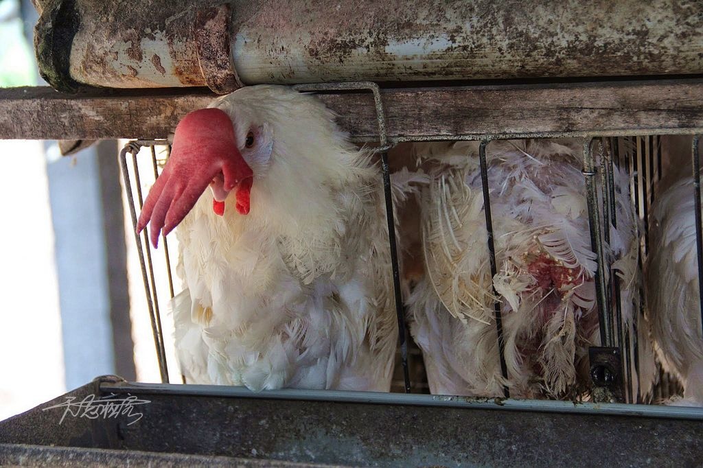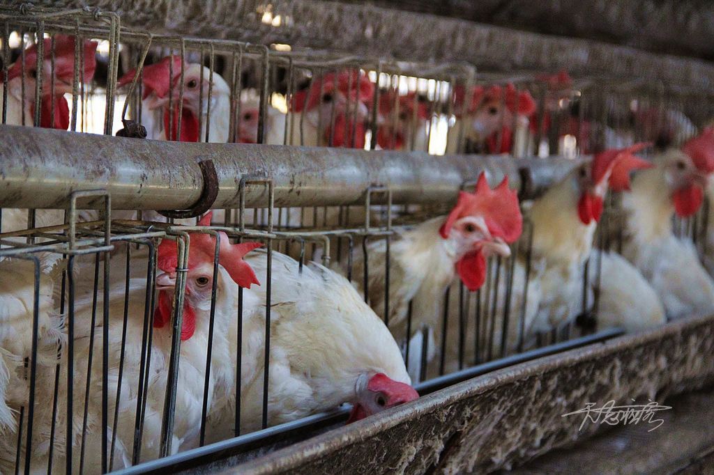 蛋雞都是關在空間極為狹小的鐵籠裡,蛋雞想要轉個身都非常困難