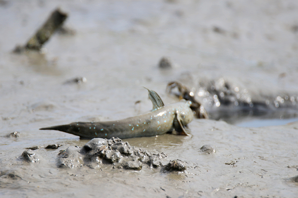 例如,廣東彈塗魚以螃蟹、昆蟲為主食,多留守於近岸紅樹林內,其體型較小,滿布深色斑紋,會依附在石頭或紅樹樹幹等垂直面上;回到水中,彈塗魚亦可像魚類遊動自如。一般漲滿潮至剛退潮之間是觀察良時。