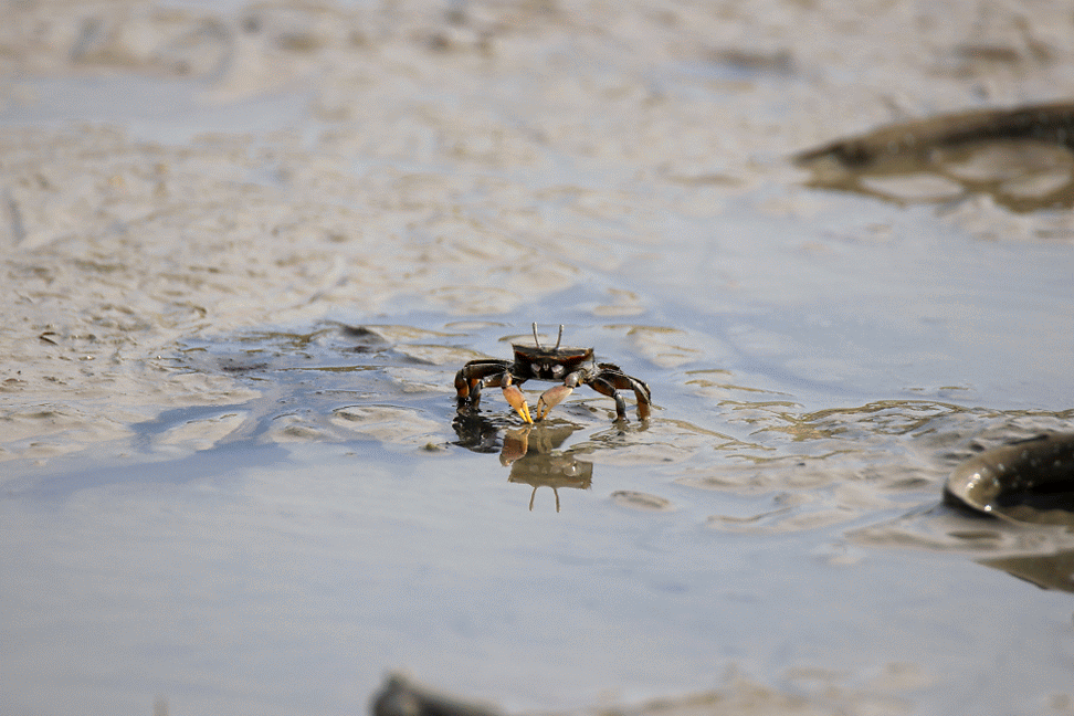 龜殼公園生態豐富,小螃蟹和彈塗魚非常多,大家看過螃蟹進食嗎?