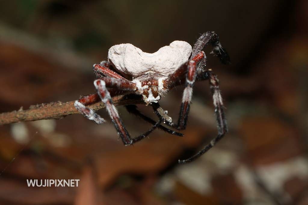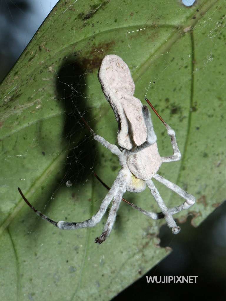答案終於揭曉,整隻都是白色的蜘蛛,那就是蜘蛛死後鈣化的屍體(↑)