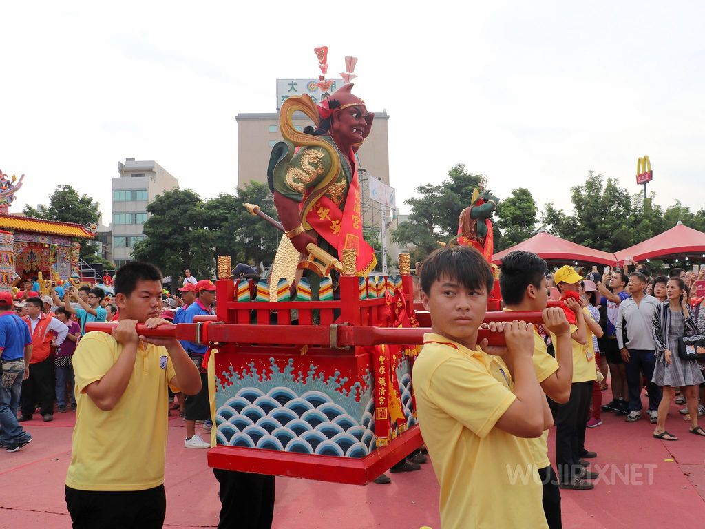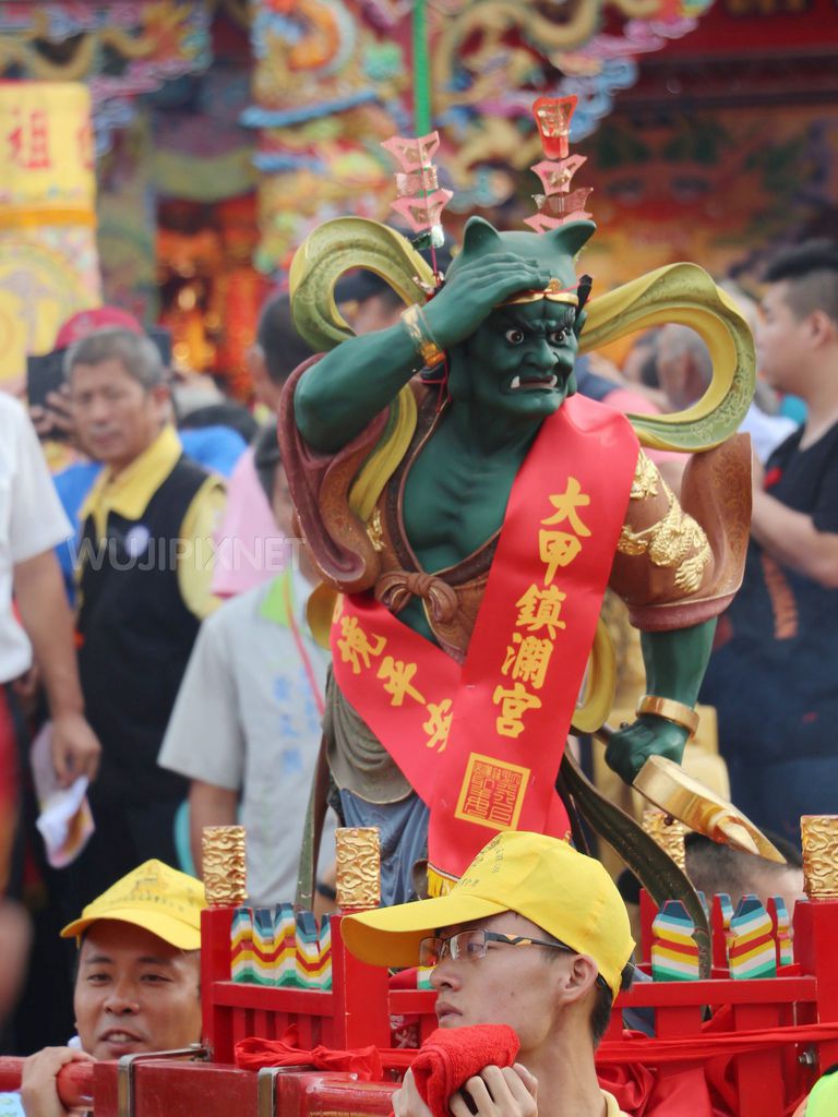 湄洲媽祖廟的千里眼與順風耳,抬轎者皆來自福建湄洲島的學生(↑)