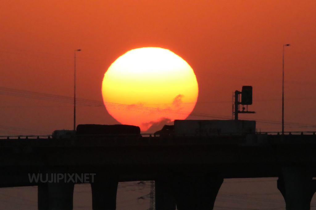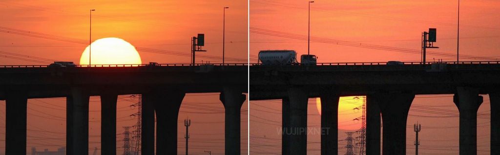 但在台中外埔忘憂谷賞夕陽很特別,碩大的夕陽先頂在南來北往的車輛上頭,再緩緩從橋下消失…
