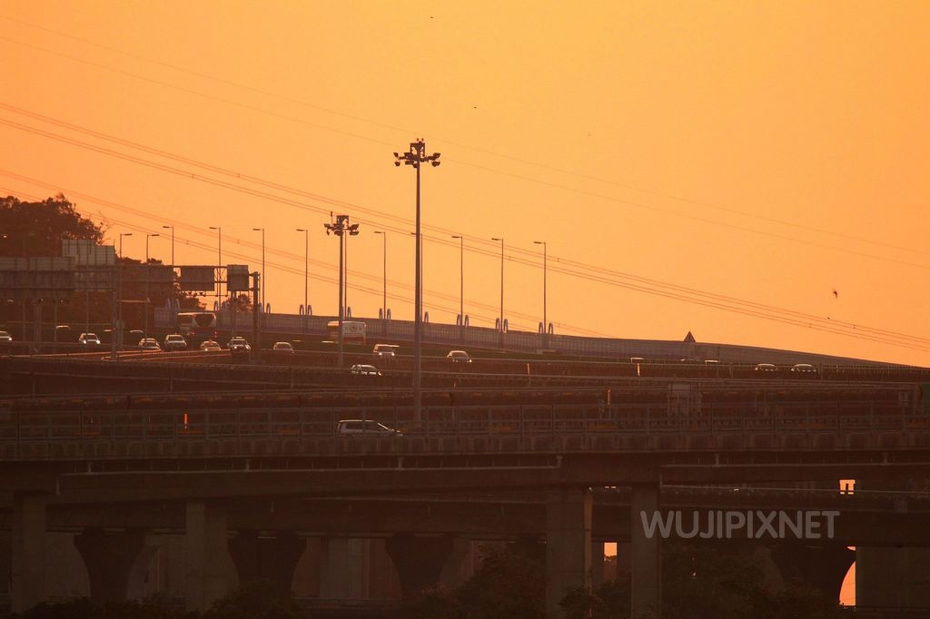 夕陽由國道三號的橋面緩緩較落橋下,觀賞這種畫面的感覺超浪漫。