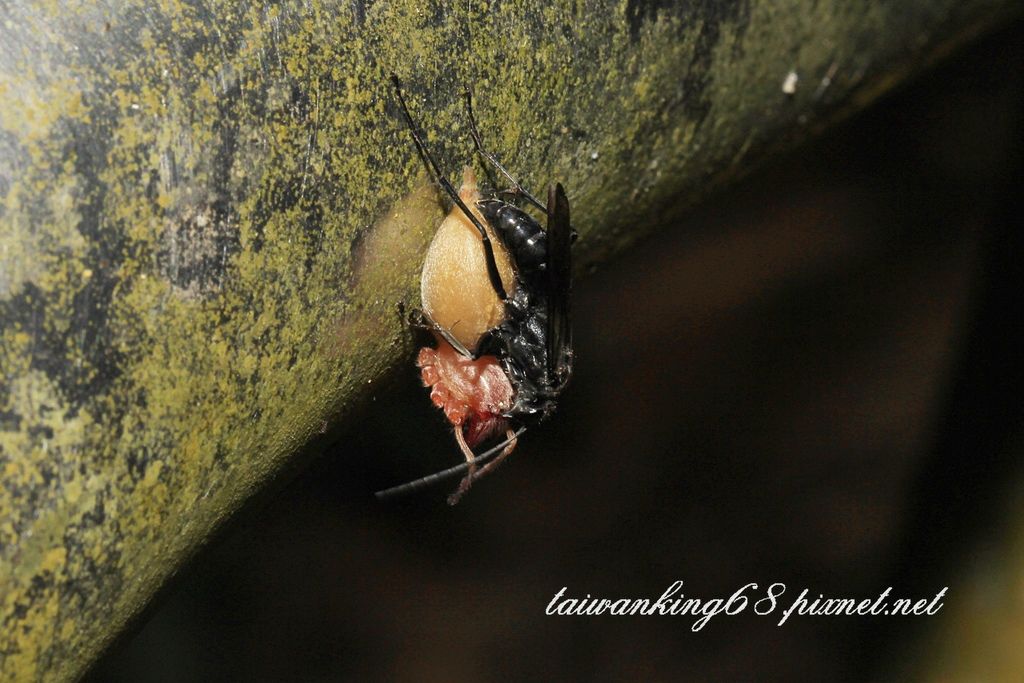 上圖(↑)是杜鵑三節葉蜂或細腰蜂,因兩種昆蟲長相極為類似,所以有待查證。