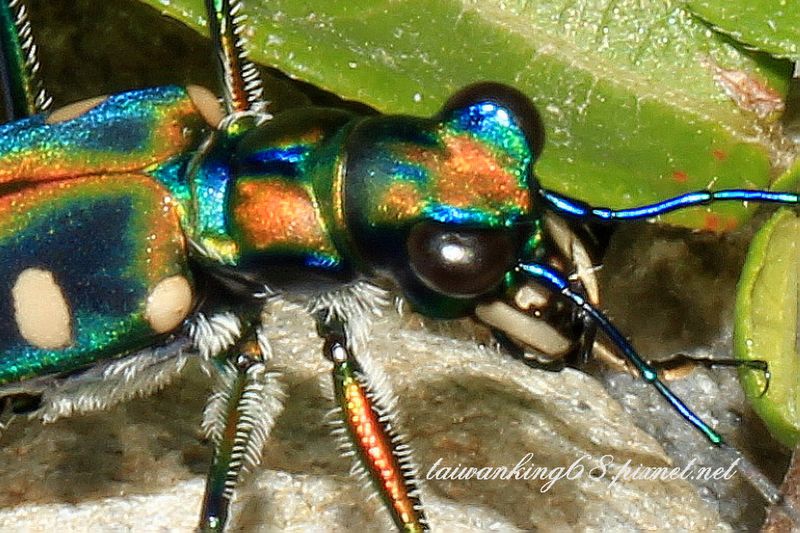 上圖(↑)為未經裁剪的原始檔案。八星虎甲蟲拍攝於后里舊泰安火車站生態園區,這麼美麗的虎甲蟲只拍一張是有點兒可惜;台中后里舊泰安火車站目前正在復育螢火蟲,此地生態豐富,我每次前往拍攝都會有驚奇的新發現。(拍攝日期:2018年5月14日)