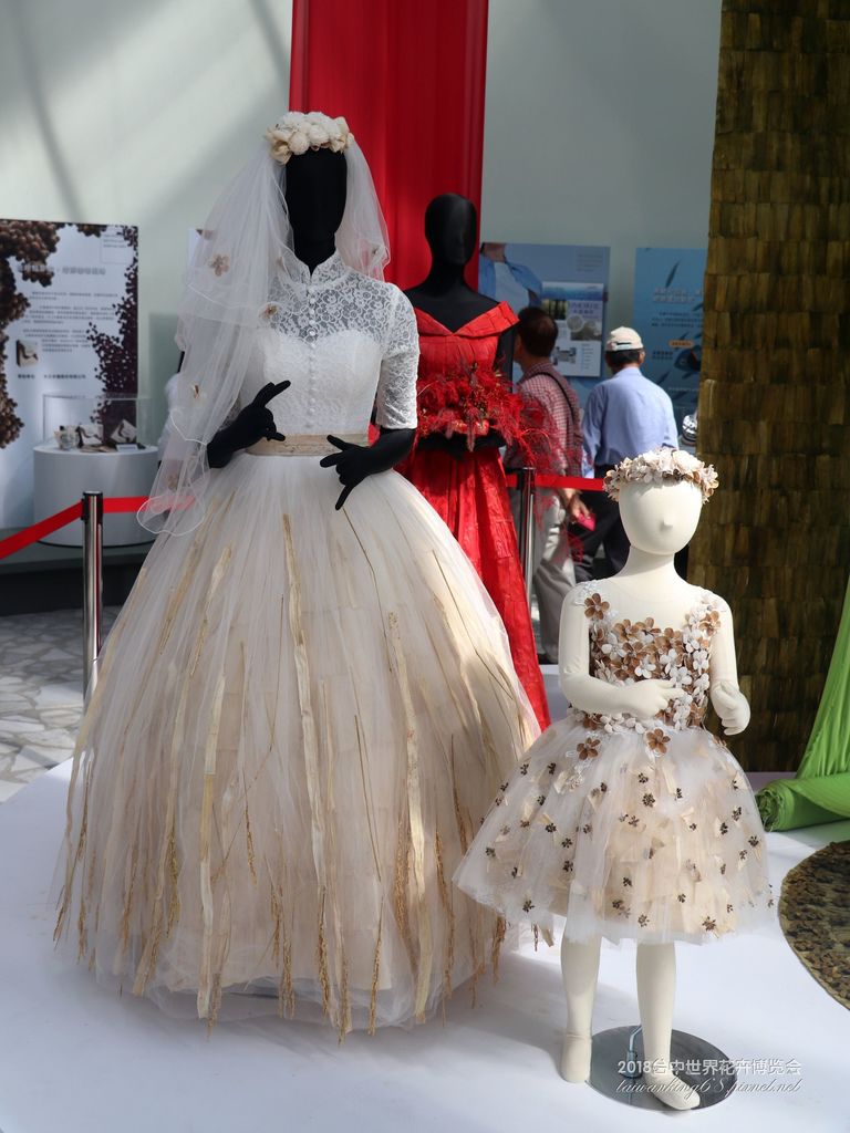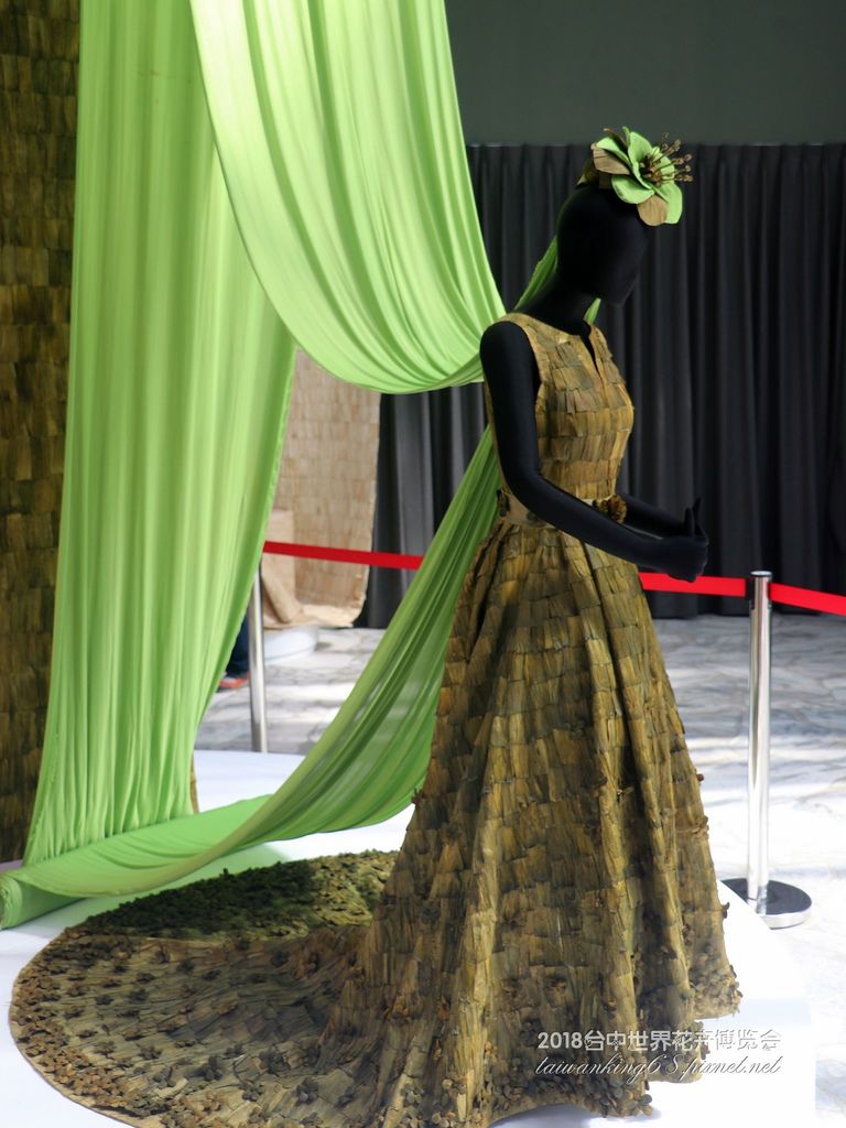 玉米葉片做成的新娘禮服與布料。(↑)