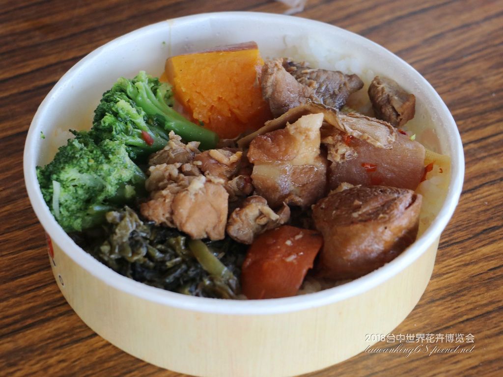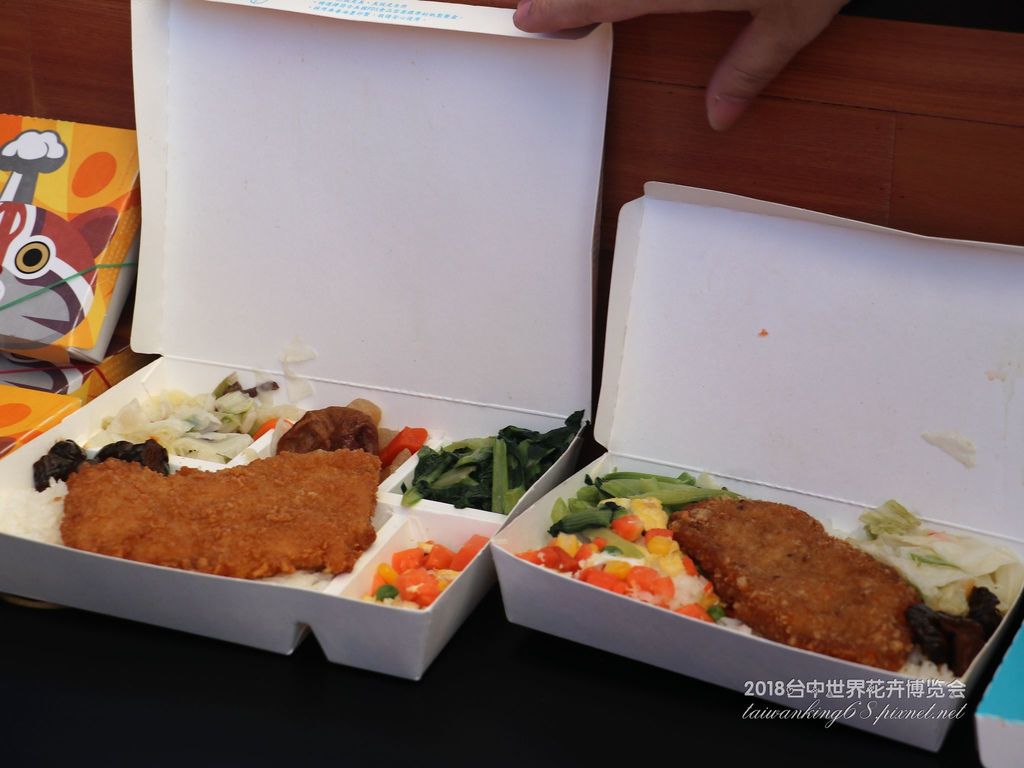 花博園區賣的便當,大90元、小65元(左圖);而農夫市集販賣的便當才80元(右圖)。