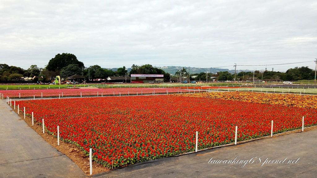 新社花海種植好幾種顏色的羽狀雞冠花。(↑)