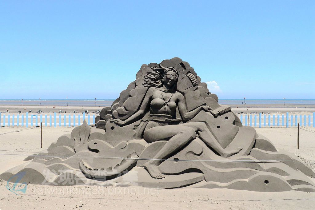 這座媽祖文化園區的媽祖神像基座位於大安濱海樂園入口處。今年大安沙雕展日期從6月29日至7月21日共為期23天,完全免費參觀。地址:台中市大安區北汕路86巷1號。