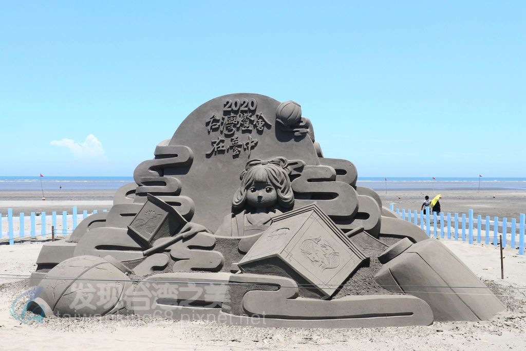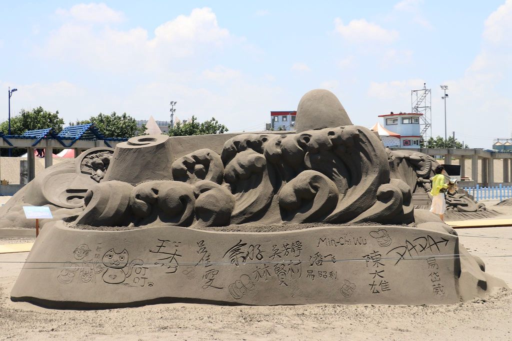 2019年台中大安沙雕展的沙雕大師簽名留念。(↑)