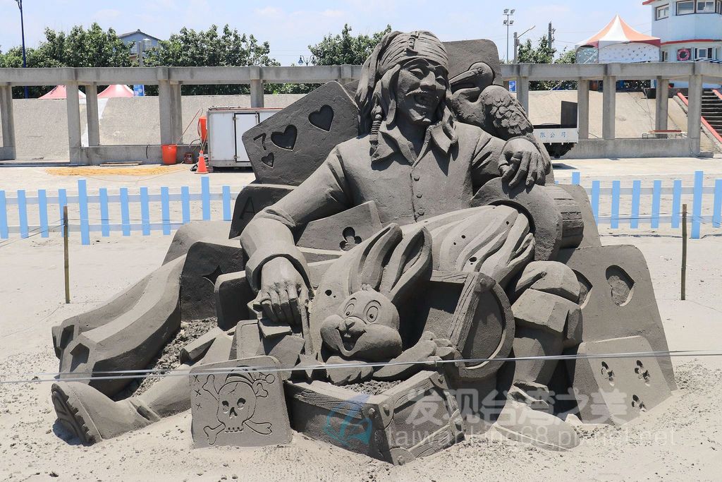 理念說明:今年首度以兩座特大型沙雕3D呈現,不管從哪個角度看沙雕,都栩栩如生;換個角度觀賞都呈現不同的沙雕造型。