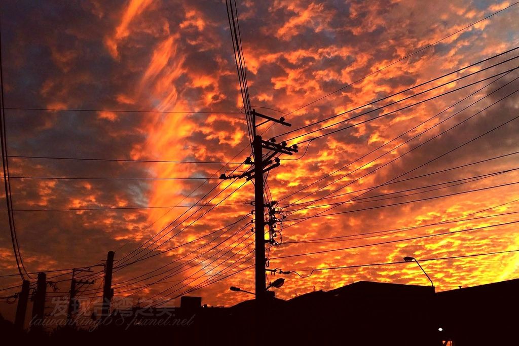 拍自高美濕地的火燒雲,天空一片火紅色,猶如著火般的恐怖。(↑)