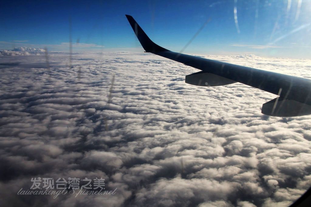 在飛機上鳥瞰天空的藍天白雲。(↑)