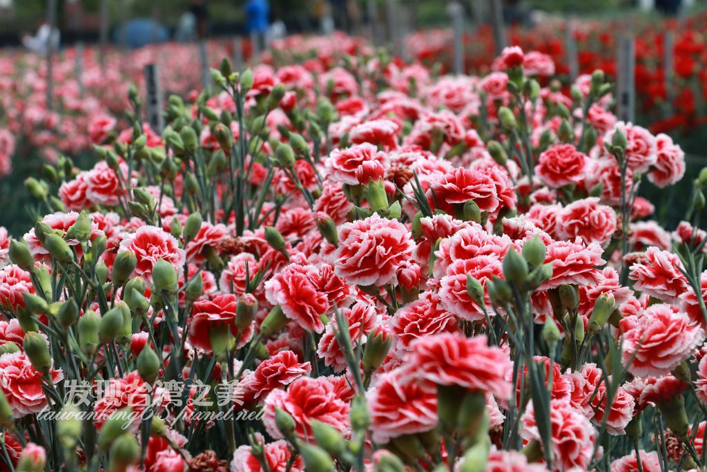 目前武漢肺炎肆虐,能在驕陽下看到這片康乃馨花海,心情有被療癒的感覺。
