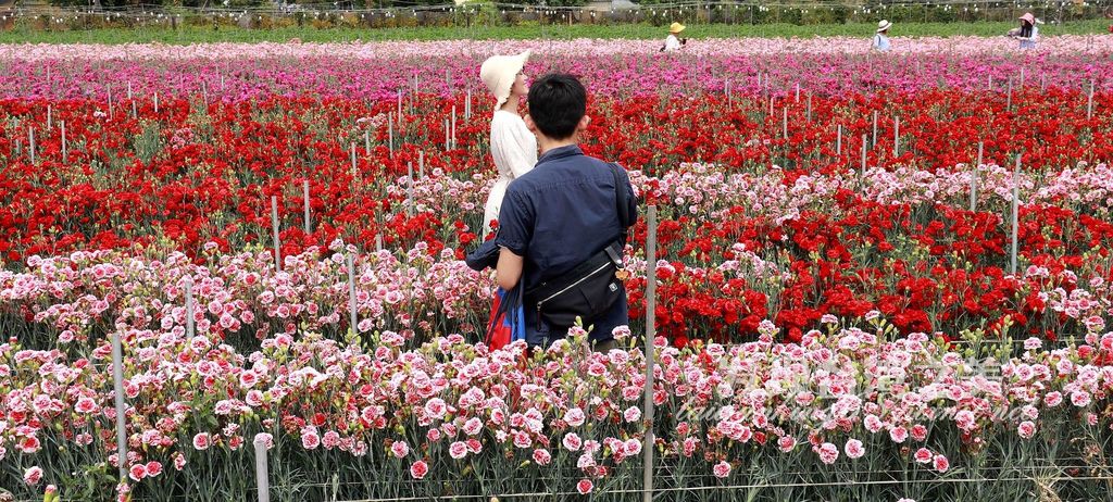 這片花田分別種了各種顏色的康乃馨,內部並規畫步道,讓遊客可以穿梭在花田之中。