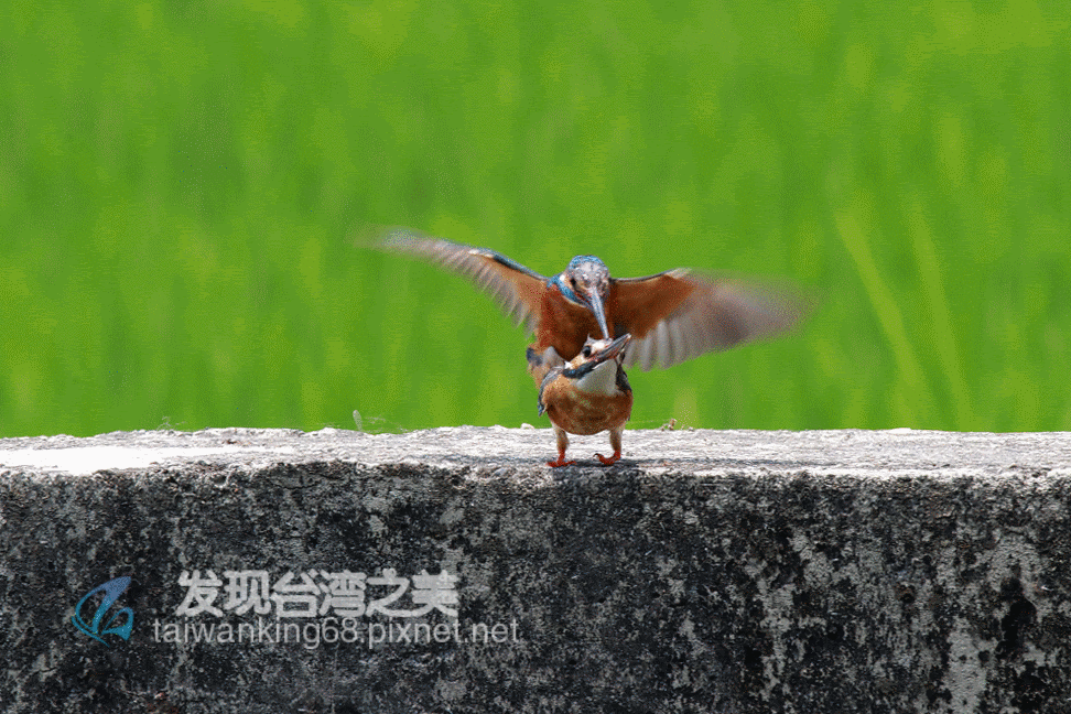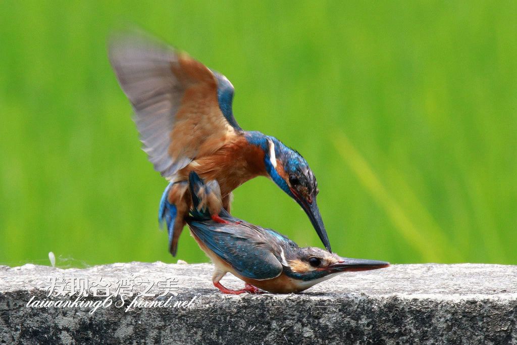 這對雌雄翠鳥有如乾材遇到烈火般,隨即快速的進行交尾。(↑)
