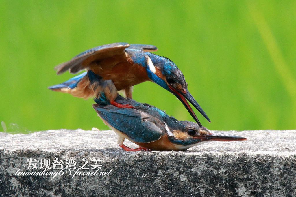 雌雄翠鳥交配完後,似乎意猶未盡,換個姿勢再進行第二次交尾。(↑)