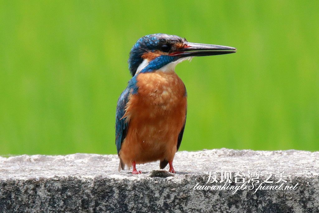 從上圖(↑)嘴喙下半部淡紅色,可看出是一隻雌翠鳥,