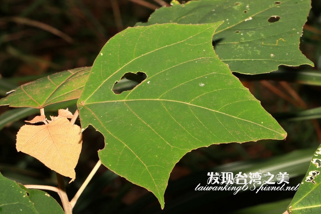 缺六點天蛾拍攝於〝野桐〞的葉背