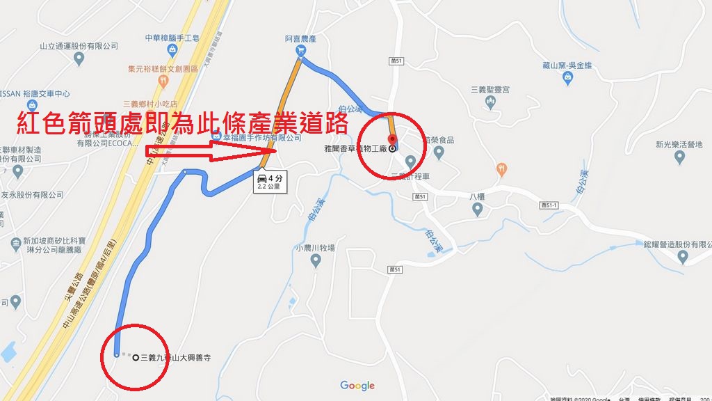 而是三義雅聞香草植物園⇄三義九華山寺廟之間,開車必會經過的一條小產業道路。