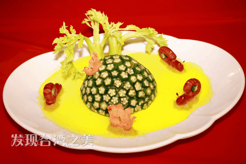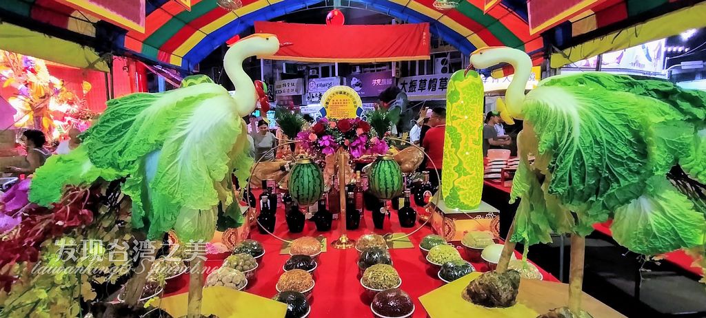 上圖這兩隻仙鶴用大白菜做成身體,看來簡單,但卻很有創意。