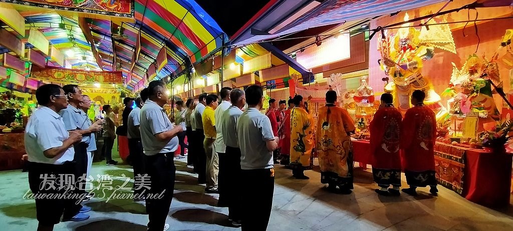 鎮瀾宮全體董監事參與普渡祭拜典禮,中間穿黃色衣服為副董事長鄭銘坤。