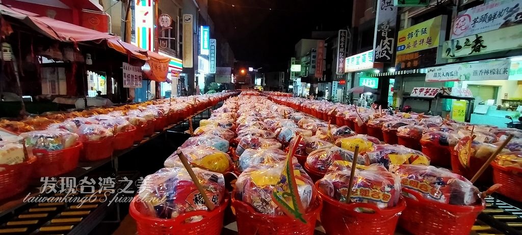 民眾參與普渡的供品似乎比往年還要多,幾乎擺滿鎮瀾宮前面的順天路。