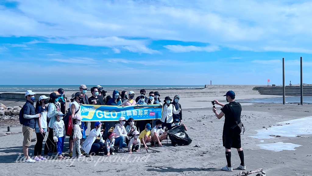 昨天台中大安氣溫頗高,這群『GEO 巨鷗』成員頂著大太陽在海邊淨灘(↑)