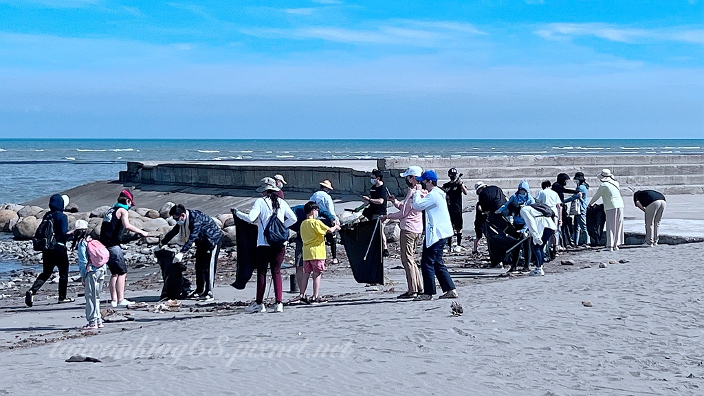 昨天五月廿九日(星期日)本想利用海水漲潮時刻,再次到大安濱海遊樂區找尋候鳥拍攝,看到一群熱愛地球的環保人士,不畏烈陽的在大安濱海遊樂區海邊舉辦淨灘活動,家長也牽著家中小孩共同參與淨灘,大人邊撿拾垃圾邊告訴孩子海洋環境整潔的重要性,其精神著實令人感動。