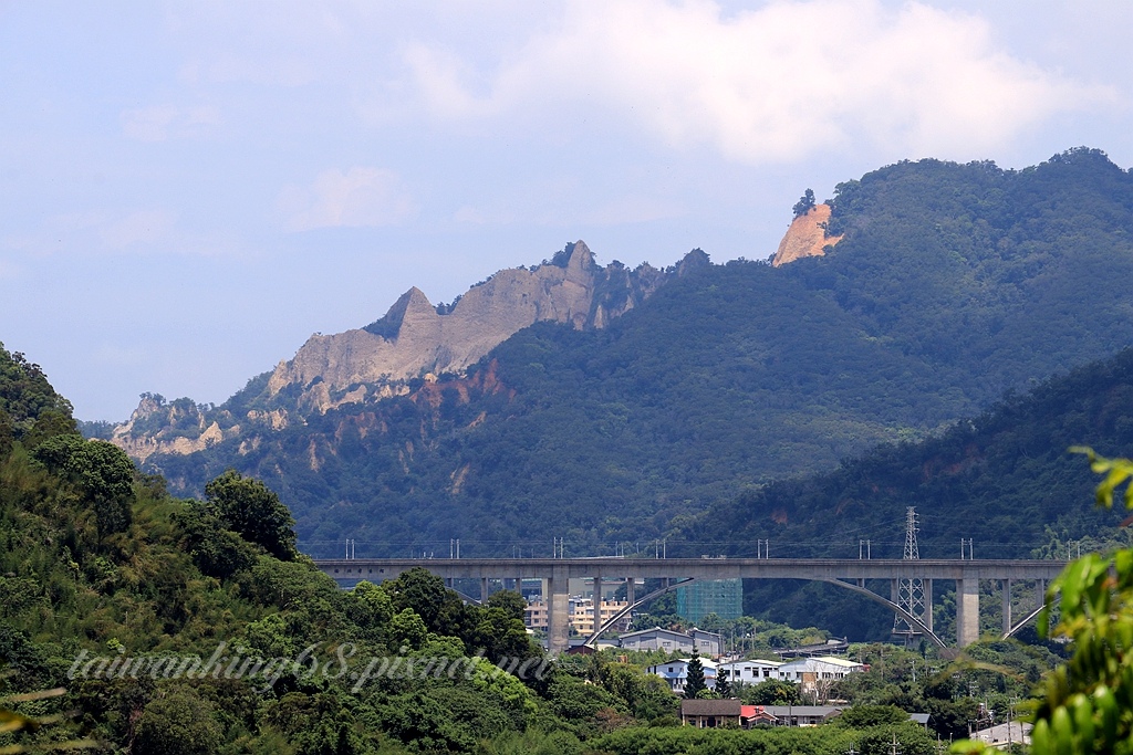 從三義鯉魚潭舊鐵道遠眺三義火燄山,風景美不勝收宛如一幅水彩畫(↑)