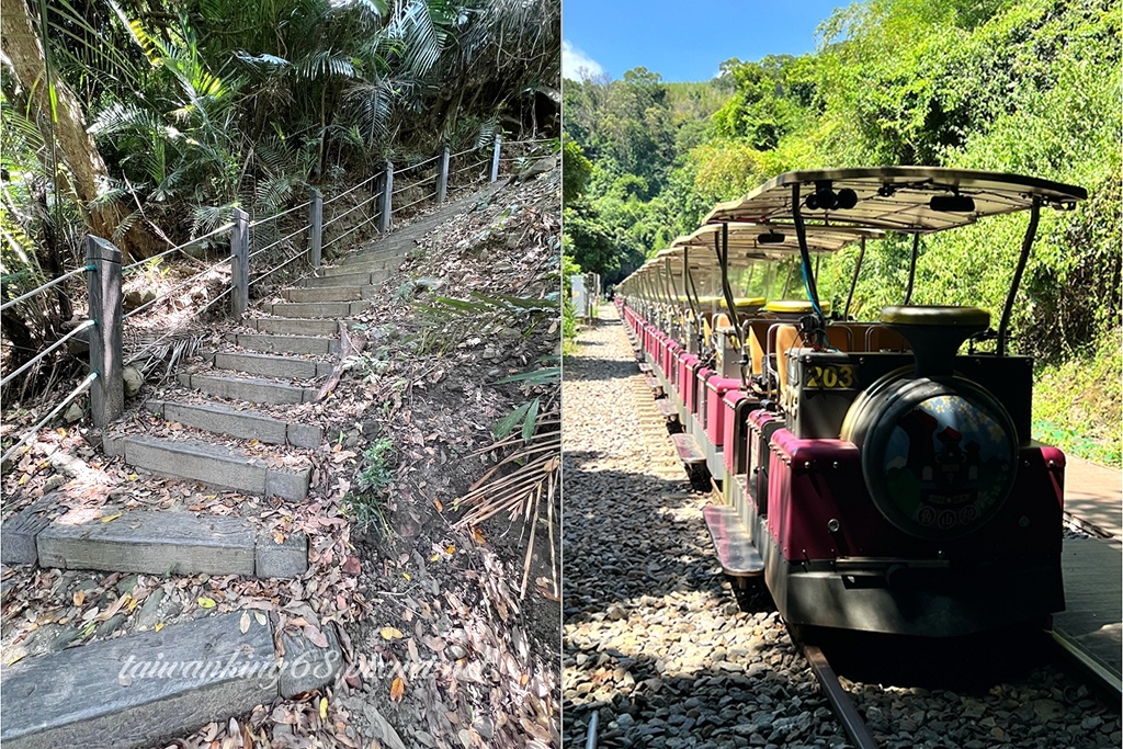 然後再從上圖箭頭方向進入,循階梯而上,即可看到這座七彩夢幻的隧道(左下圖)