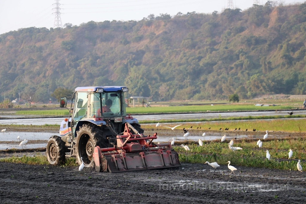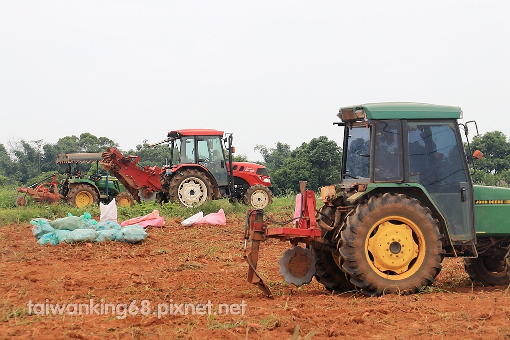 上圖(↑)是地瓜收成機,挖掘機將地瓜翻至地面,大幅降低採收時間與經濟成本。