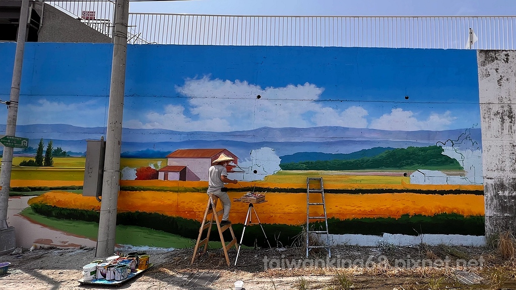 大甲北堤東路的鐵道橋下護岸坡彩繪,詳見台中大甲北堤東路鐵路橋下的美麗田園彩繪
