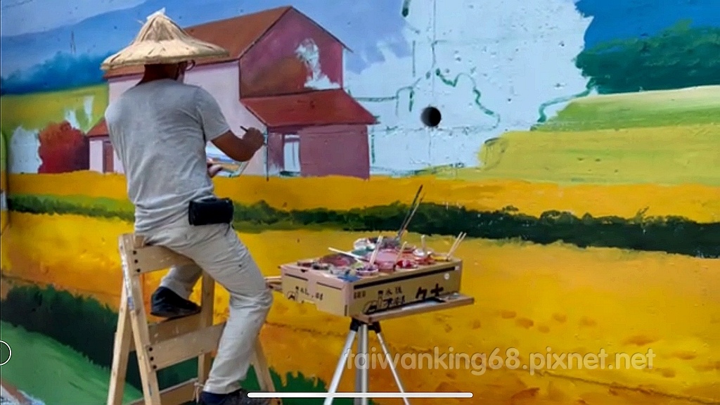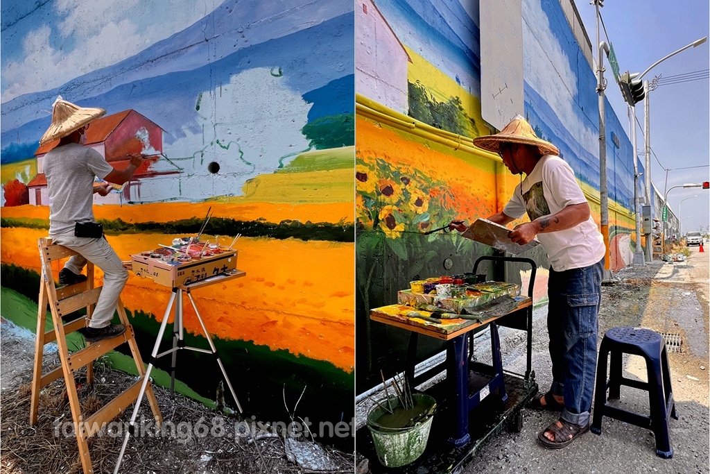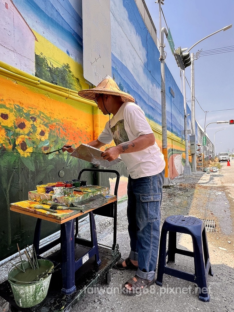 彩繪大師畫圖的速度好快,2022年9月22日我再經過時,沒想到圖案彩繪已完工。(↑)