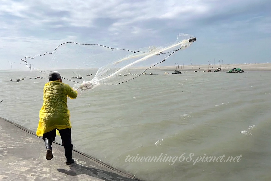 我曾看過漁船放下漁網撈魚,也曾看過在海邊的釣魚者,就是未曾看過有人在海邊拋網捕魚