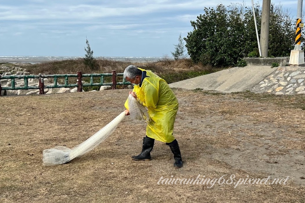 話說上星期的一個上午,我經過台中大安港看見有一個人在海邊拋漁網捕魚