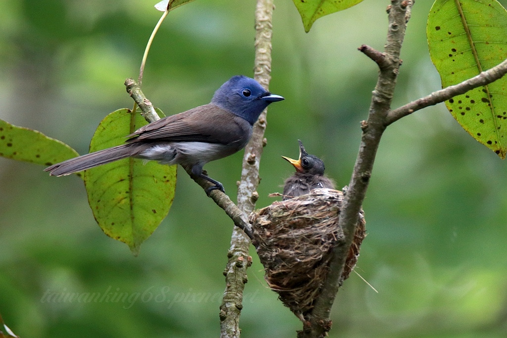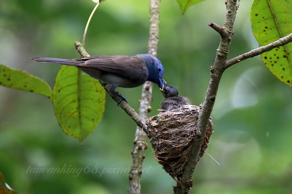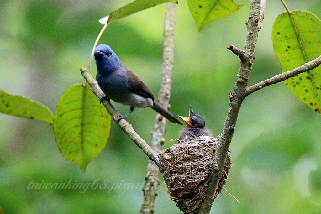 黑枕藍鶲育雛通常都由兩隻親鳥輪流照顧,可惜我只拍到母鳥(↑)
