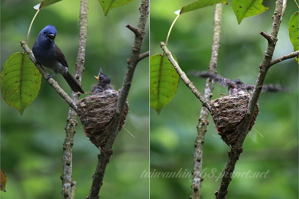 原來黑枕藍鶲幼鳥孵出後的第7至9天就會離巢,而令我遺憾的是沒有拍到公鳥