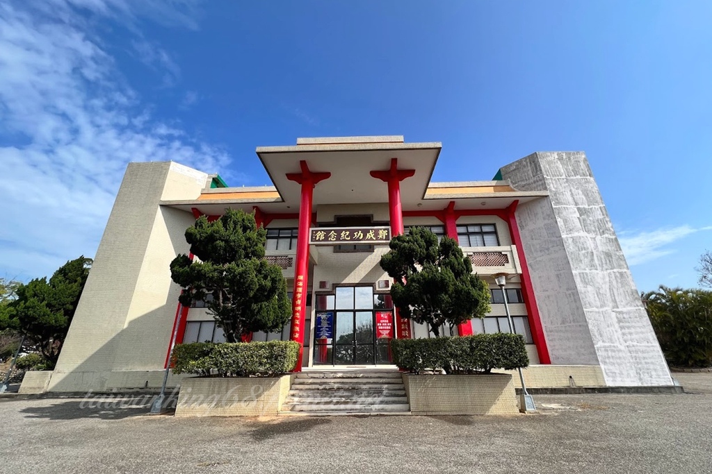 鄭成功紀念館正前面是國軍忠烈祠,後方種有百年紅檜樹