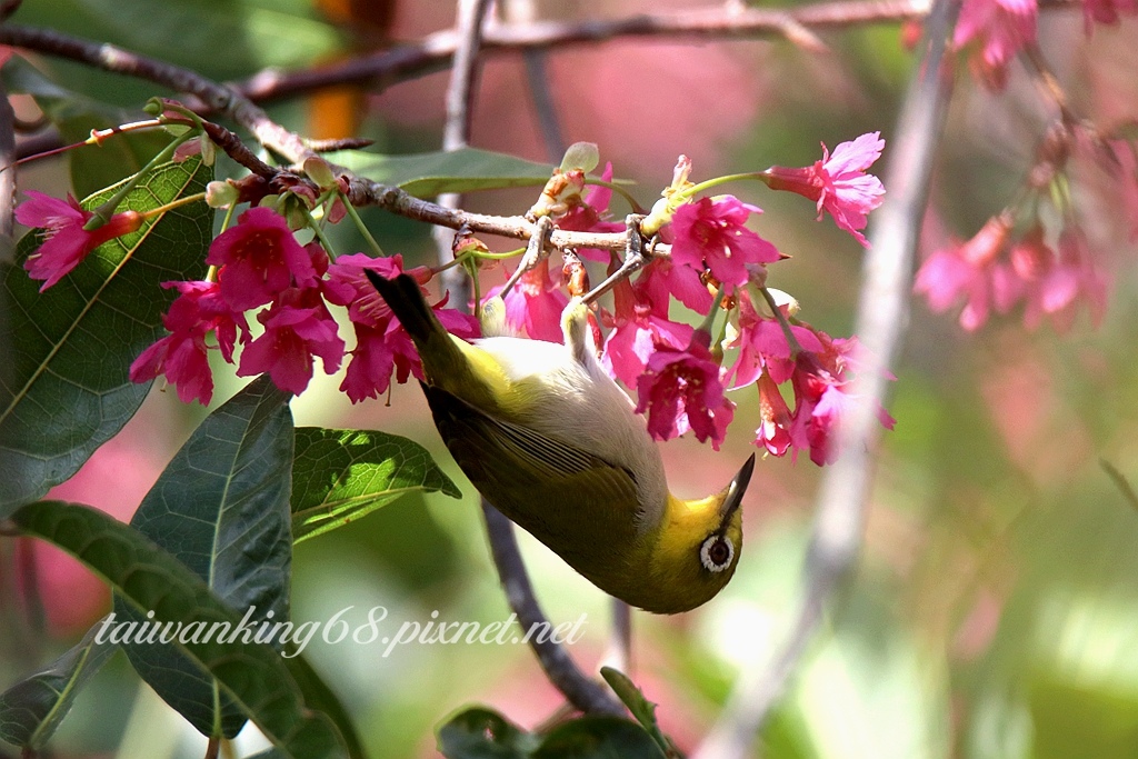 最美的花鳥圖《綠繡眼與山櫻花》(↑)